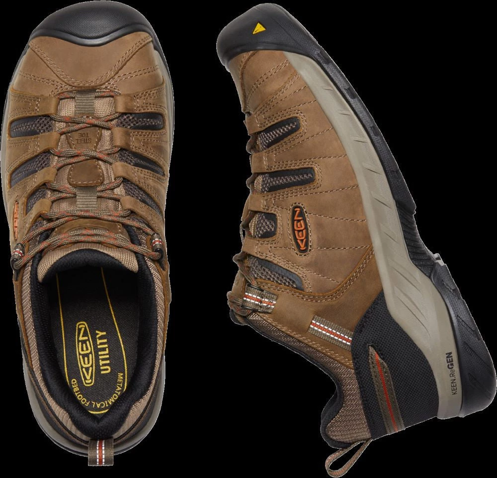 KEEN has reinvented the popular Flint with their innovative KEEN.ReGEN cushioning midsole and a highly slip-resistant, rubber outsole. When you work hard, these steel toe hikers will work even harder at keeping you safe and comfortable.Â
